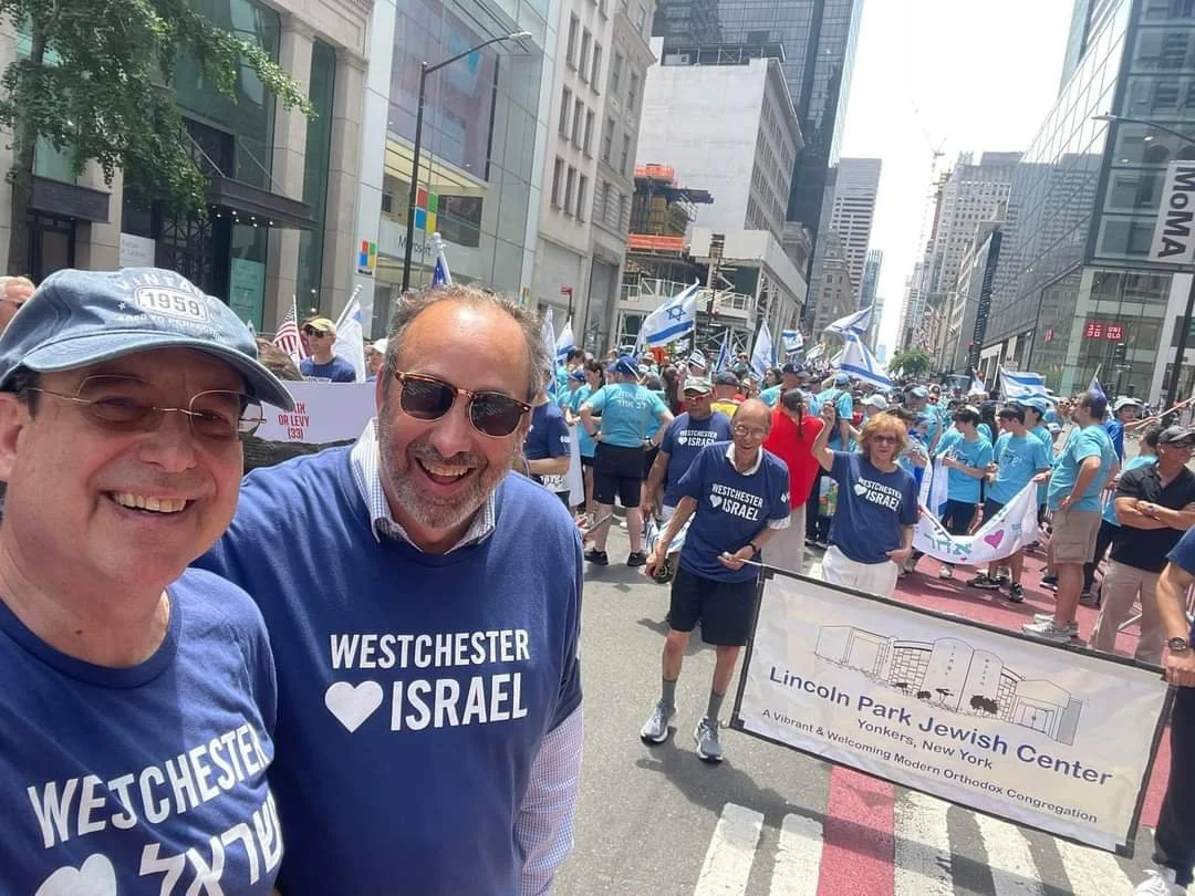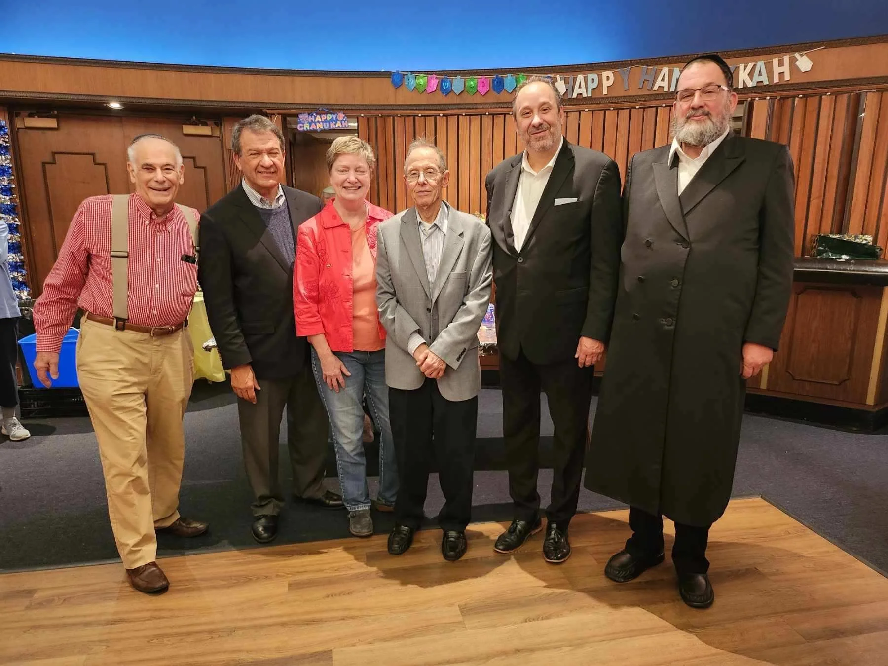 Westchester County Executive George Latimer with LPJC Board Members Joe Schnitzler, Eileen Schnitzler, Jack Schweizer with Rabbi Sebbag and Vayetar Yitzchok Executive Lazar Lieberman, Channukah Party, Dec 10, 2023